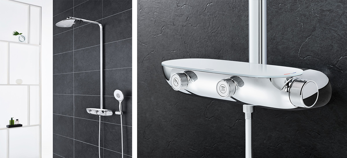 Contemporary design provides streamlined control of up to three shower functions in one trim, providing perfect control of water volume and temperature within fractions of a second. The GrohTherm SmartControl Thermostatic Trim means half the work for three times the showering pleasure.
